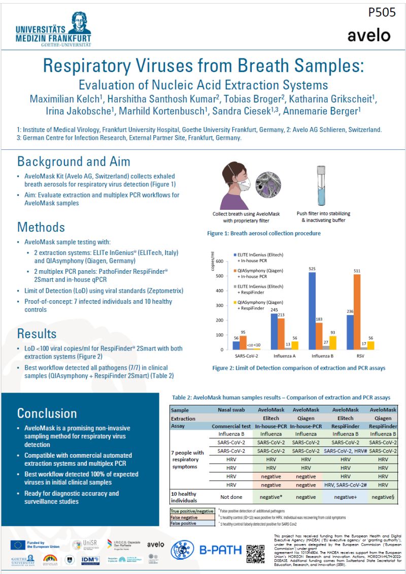 The project aims to develop and validate non-invasive exhaled breath aerosol (XBA) sampling methods combined with multiplex molecular detection to diagnose and screen respiratory infections with pandemic potential. Regardless of symptoms, the aim of this approach is to detect multiple pathogens from a single sample and is adaptable to emerging pathogens. The goal is to enhance pandemic preparedness, improve the diagnosis of respiratory illnesses, and reduce healthcare burden by enabling more accessible and scalable testing, potentially including self-sampling and self-testing.
